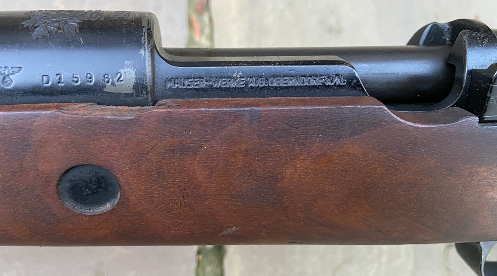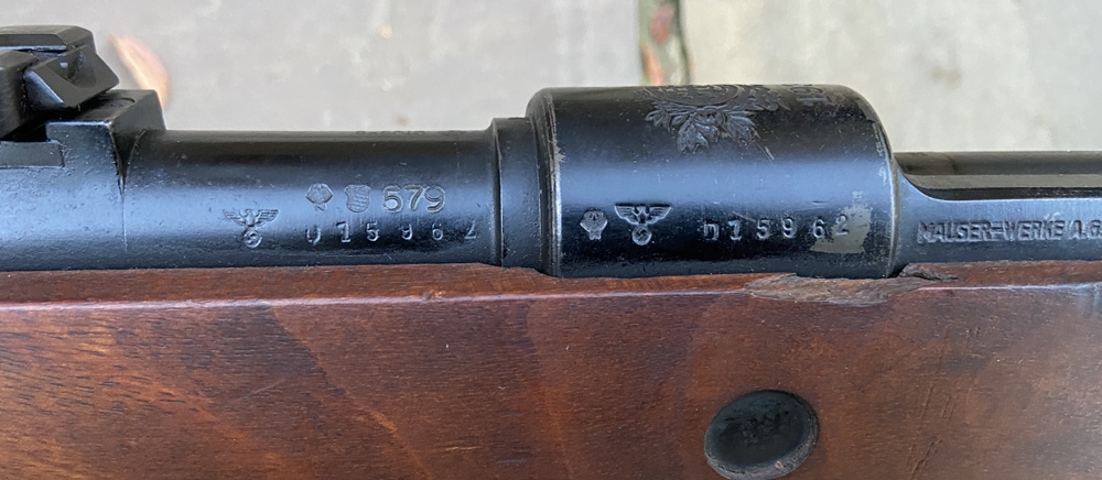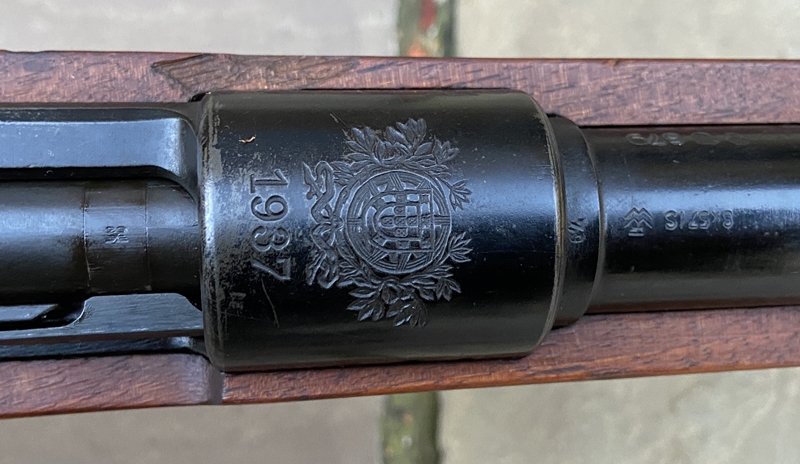 *** SOLD *** Images below show all numbers that are matching, not shown is the magazine follower, but this does have the matching number 1937 Mauser Portuguese Model 937-A Service Rifle. This rifle is nearly identical to the German Army Issue K98k Rifle with the exception of the front sight protector and an extra set of sling attachments. The large fixed front sight protector is the giveaway that this is a Portuguese Mauser. These rifles are German Waffenamt marked and largely identical to a standard pre-war K98k. Portugual began replacing the 1904 Mauser - Vergueiro