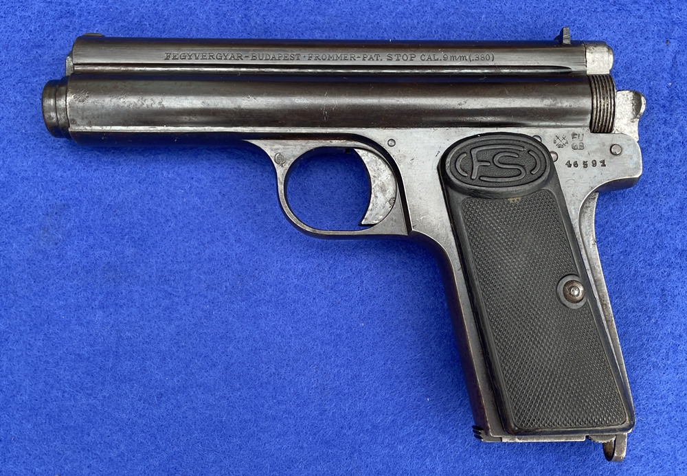 Frommer Stop 1912 pistol 1915 Serial No Range: 30000-53000 (9mm Pistols in 1915 : 35191 - 49212) Manufactured in Budapest. Action Marked: FEGYVERGYÁR - BUDAPEST - FROMMER - PAT. STOP CAL.9m/m (.380) This Frommer design appeared in 1912 and was adopted by the Austro-Hungarian Army. It's designation was 'Frommer Stop', it had no model number. The international word 'Stop' meant 'to stop' the target. During WW1 the Frommer Stop pistols were also sold to Germany, Bulgaria and Turkey. Correct 9mm Frommer Magazine Current UK/EU Deactivation Spec Comes with a Birmingham Proof House Deactivation Cert ** To Purchase This Item Proof of Age & Address is Required ** |