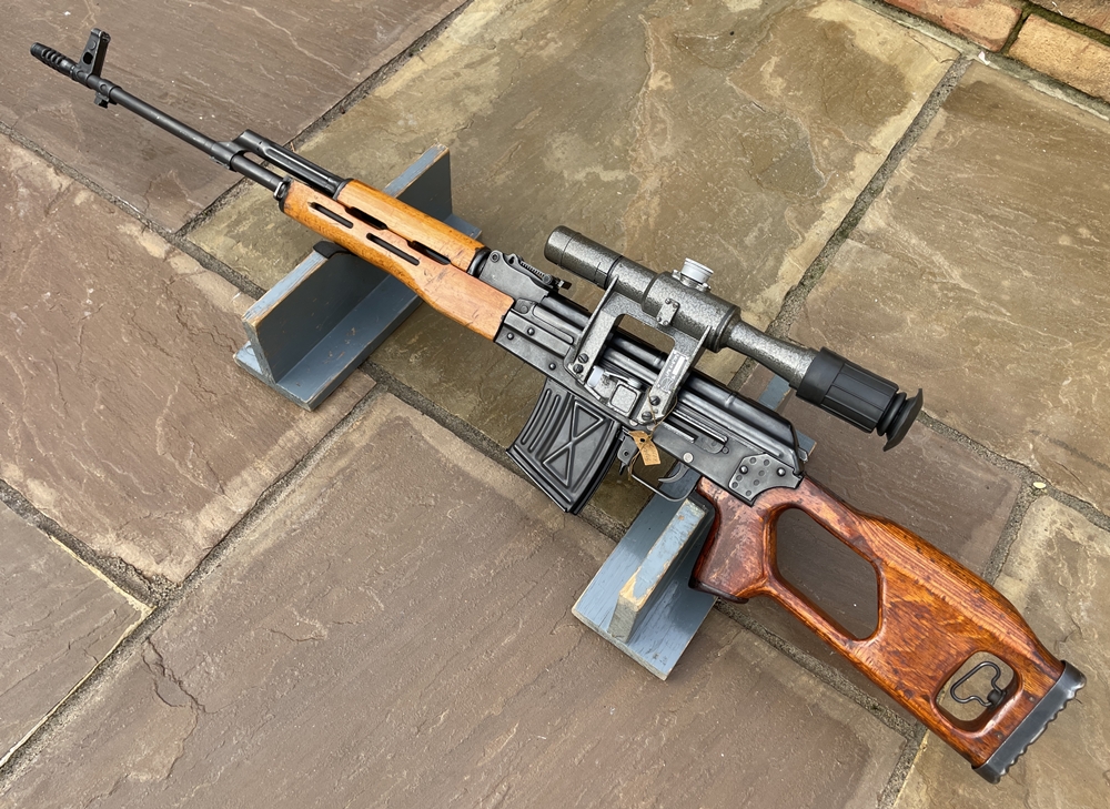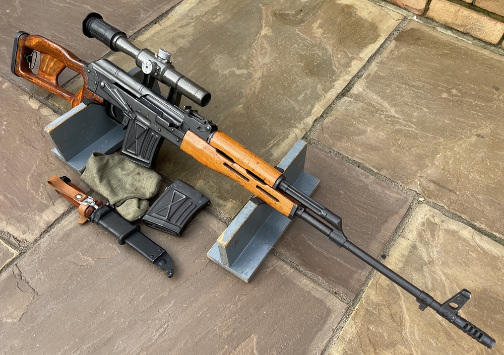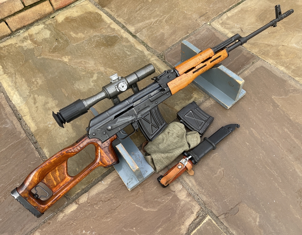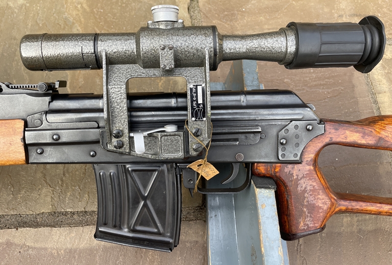 ** Commission Sale ** The PSL (Romanian: Pu. ca Semiautomata cu Luneta, 7.62x54mm model 1974, "scoped rifle") is a Romanian designated marksman rifle. Though similar in appearance to the SVD Dragunov, the PSL rifle is mechanically completely different as it is based on the RPK , with its internals simply being scaled up to accommodate the more powerful 7.62×54mmR cartridge. These were built for the UK Market by Nouva Jaeger in Italy & Imported by Valmont Arms a few year ago Comes with: Scope Cover, Spare Magazine, 180 Rounds of 7.62x54R Ammunition, Correct Bayonet & Oil Bottle