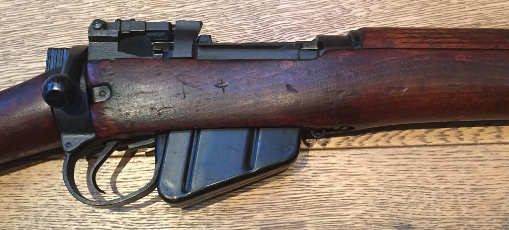 SOLD The Lee-Enfield, Rifle, N.9 Adopted in 1956 The Royal Navy contracted for approximately 3,000 of these rifles, which were delivered between 1956/7 and 1960. The rear-sight on the Navy issue rifle used a standard No.4 sight leaf with an additional 25 yard calibration on the left-hand side of the elevation slide. In 1962 Parker-Hale were advertising their own commercial version of this rifle marked No.9, these were never military issue.
