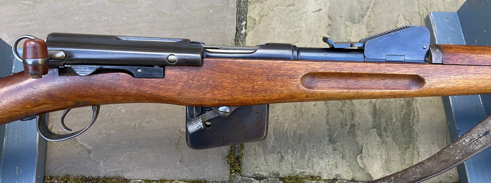 The Model 1889 was chambered for the 7.5x53.5 round (GP90) with a 213